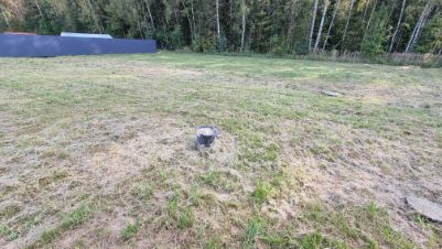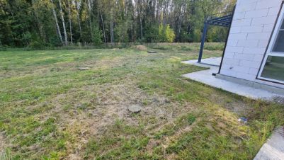 Вокруг дому уложена ливневая система. Вода с крыши стекает в трубы под землей и выводится в ливневую канаву у леса.