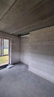 Дом сложен из газобетонных блоков. Потолки - ЖБ плиты. Фундамент под домом и верандой - заливная ЖБ плита.