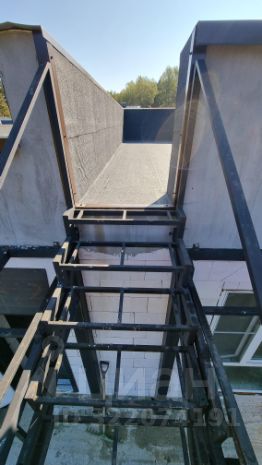 Веранда выполнена в виде сварных металлоконструкций. Вверх к эксплуатируемой части крыши сделана лестница.