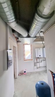 Установлено вентиляционное оборудование с рекуператором. Установлен канальный кондиционер для столовой.