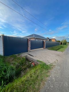 Сделаны откатные ворота, установлены столбы