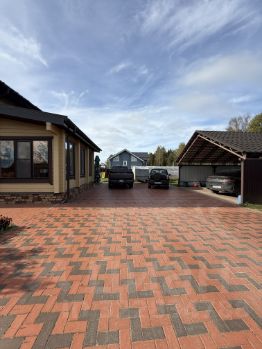 УЧАСТОК: 12 соток (ИЖС), огорожен забором с ОТКАТНЫМИ АВТОМАТИЧЕСКИМИ ВОРОТАМИ, выровнен, отсыпан, выложен брусчаткой, засеян газоном, много хвойных и декоративных растений, сделаны дорожки, мангальная зона, отдельно стоящая БАНЯ, погреб, навес для нескольких машин, теплица, грядки.