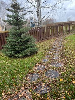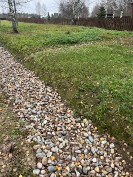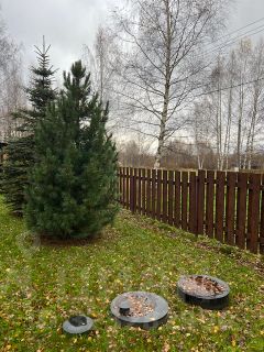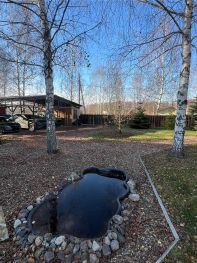 Вся территория вокруг дома огорожена забором, имеет ландшафтный дизайн, с большемерными деревьями более 5 лет высадки (ели, сосны, пихты, клен, рябина, яблони, груши, вишни и тд), посевной газон, прогулочные дорожки, декоративный пруд, галечная отсыпка на подьезде к дому и по территории. Крытые парковочные места вместимостью три автомобиля + постройка для генератора и хранения хоз. инструмента.