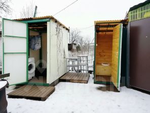 На участке благоустроенный туалет с освещением, летний душ, стиральная машина.
