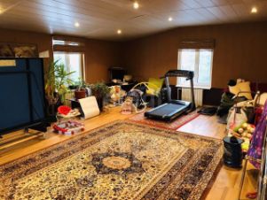 -Первый этаж коттеджа: спортзал, прихожая, зал, две кухни, туалет, веранда.