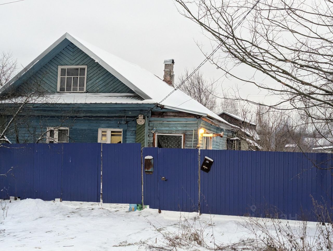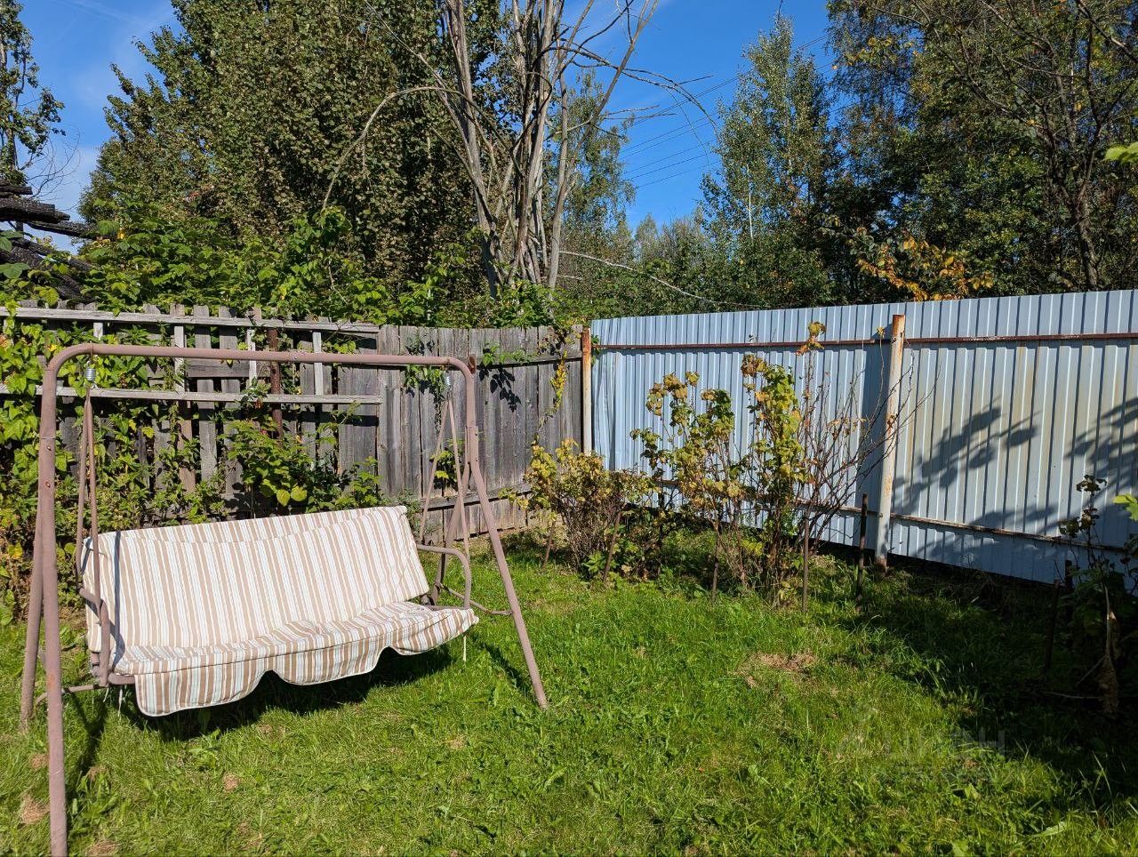 На участке есть хозяйственные постройки. Установлен забор из профлиста.