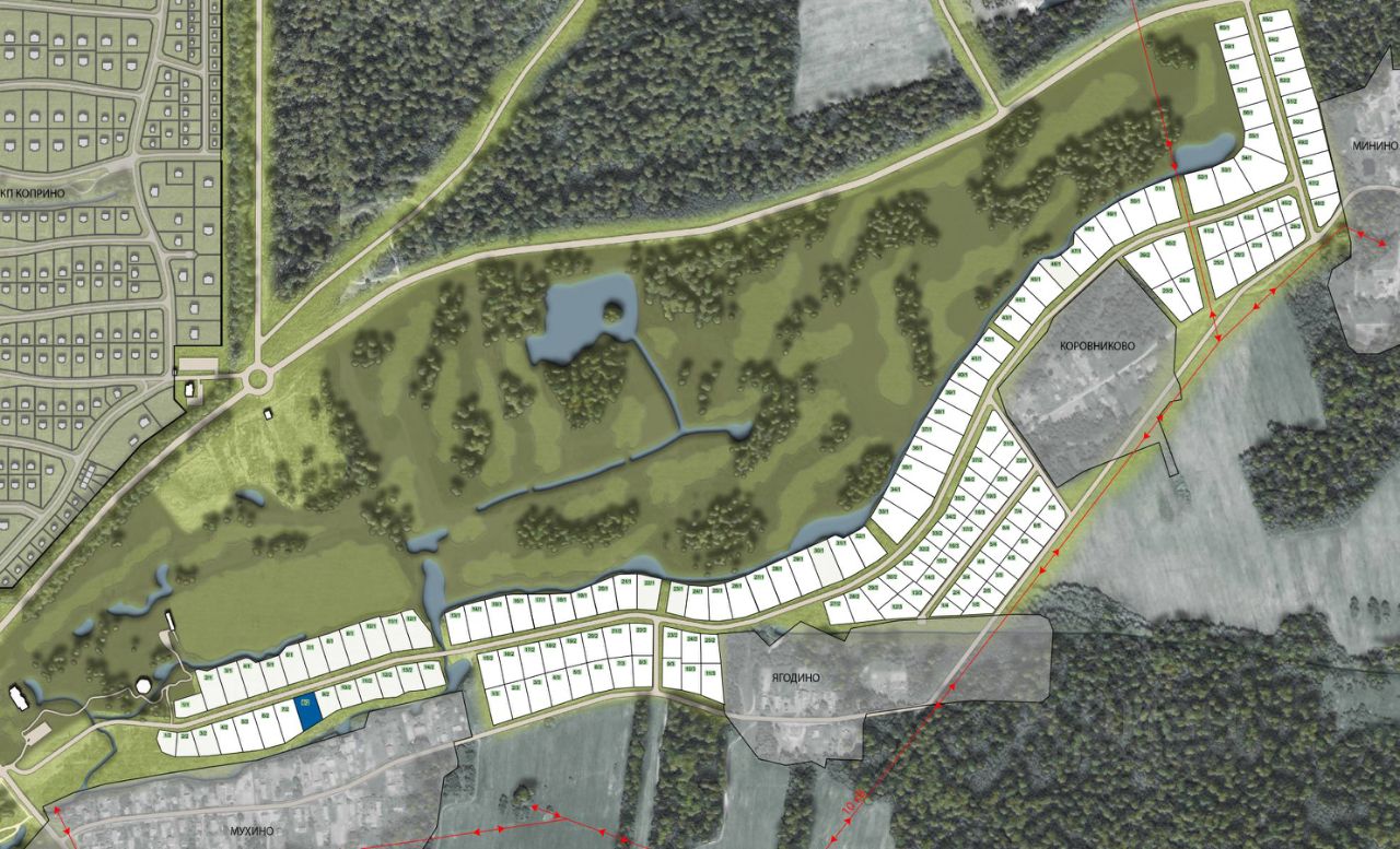 Вторая линия гольфа.Газопровод будет до конца года, электричество по заявке, водопровод и канализация в планах. Дорога в щебне .