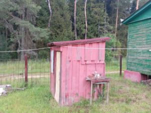 К дому пристроена небольшая сарайка. Есть постройка с душем.