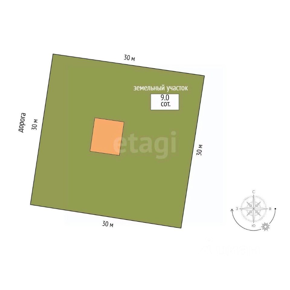 Участок: 9 соток, огорожен забором по всему периметру участка.