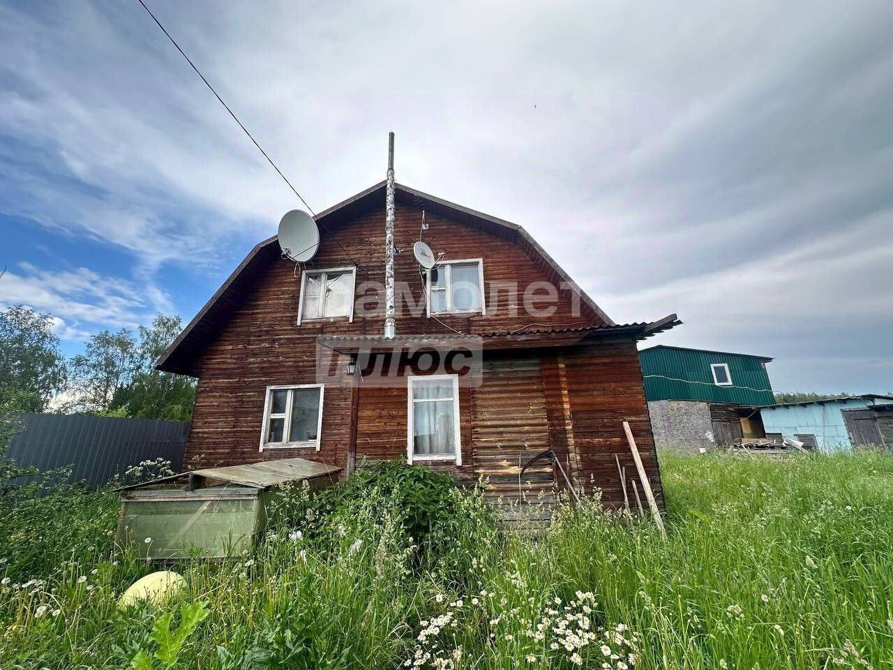 Земельный участок ровный и сухой, 10 соток, предназначен для личного подсобного хозяйства. На участке расположено ещё одно двухэтажное здание, в котором можно проживать. На первом этаже баня, на втором расположены спальные комнаты. Общая площадь - 108 кв.м. Также на участке имеется теплица и сарай. Соседи хорошие дружелюбные.