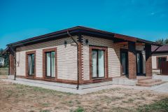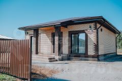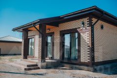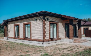 Дом построен из 400 мм газосиликатного блока и облицован кирпичом "Браер". - фундамент: монолитная плита - кровля: металлочерепицА, утепление 250 мм. - большая терраса с выходом на участок из кухни