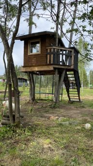 •Для игр и развлечений детей построен сказочный домик на дереве. А также есть батут и качели.