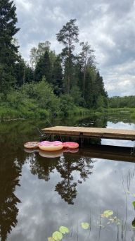 •Граница участка проходит вдоль берега реки. Для комфортного купания и рыбалки сделан пирс на сваях.