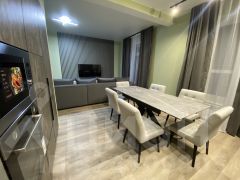Продается современный одноэтажный дом с отличным ремонтом, площадью 96 кв.м. пригодный для круглогодичного проживания со всеми коммуникациями. Расположен на огороженном участке 7.2 сотки, плюс 1.5 сотки перед участком, для ИЖС, в г. Переславль и 120 км. от МКАД по Ярославскому шоссе. Дом построен из блоков на ленточном армированном фундаменте. Фасад дома отделан планкен лиственница, три другие стороны-металлический сайдинг. Крыша фальцевая кровля. Внутренняя отделка: натяжные потолки, стены выровнены гипсокартоном, на полу бесшовный кварцвинил. Дверь стальная, утепленная с терморазрывом. Окна двухкамерные стеклопакеты - 3 стекла. Электричество 15кВт, вода из скважины заведена в дом, канализация септик, установлена сантехника, есть видеонаблюдение и оригинальная подсветка дома. Отопление-электрическое от электрокотла. Газ по границе участка. В доме большая кухня - гостиная, холл, три комнаты, санузел, кладовка. Во дворе выложены сделана отмостка и оборудована стоянка для машин. Вся новая мебель и техника остается при продаже. Инфраструктура города в шаговой доступности. Подходит под семейную Ипотеку.