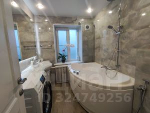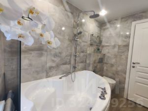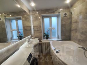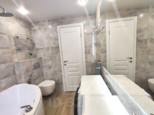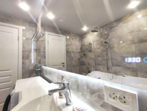 Ванна 5,5кв.м.просторная, полностью в плитке, с подогревом пол, огромное зеркало с подсветкой выполнено под заказ. шкафы и полочки гармонично дополняют друг друга.