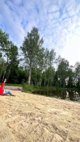 Живописная природа: сосновый лес, чистая река, пляж на озере.