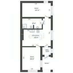 - Кухня-гостиная: 19 кв.м.