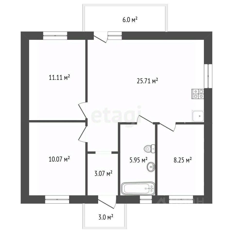 Внутренняя отделка - полы: сухая стяжка, стены: выровнены влагостойким гипсокартоном 12 мм и подготовлены под финишную покраску или обои, что позволяет новому владельцу сразу приступить к дизайну интерьера по своему вкусу.