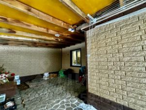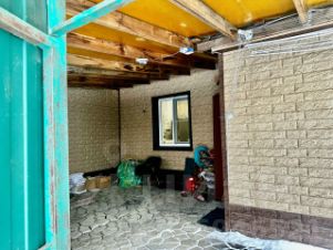 Входная зона от забора до крыльца закрыта от погодных невзгод ,выложен тратуарной плиткой ,крыша ,стены облагорожены декоративным кирпичем .