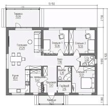 Дом представляет собой одноэтажное здание общей площадью 115,8 м. В доме 3 комнаты, а высота потолка варьируется от 2,7 м в низкой точке до 3,9 м в коньке, что создаёт ощущение простора и свободы.