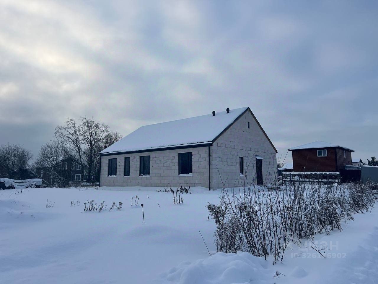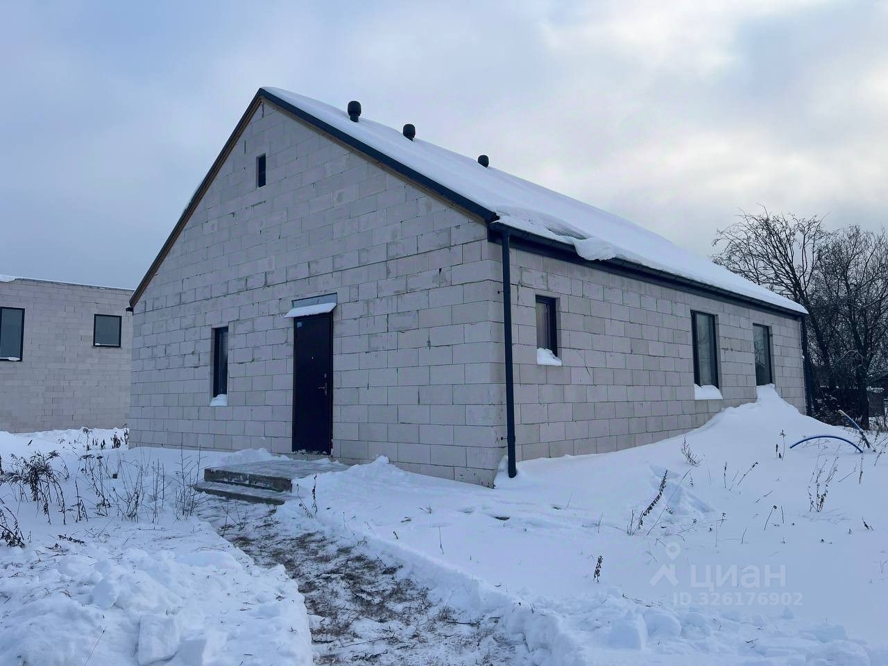 Дом возведен на плитном фундаменте ( 25 см плита, утепленная 100мм ЭППС), стены из газоблоков 400 мм, по всем стенам залит армопояс. Установлены окна Veka whs72 ( двухкамерный стеклопакет), фурнитура roto. Чердачное перекрытие-балки 200*50 мм. Стропильная система в виде ферм. Покрытие крыши- кликфальц (грандлайн 0,5 мм). Чердачное перекрытие не утеплено. На кровле и фасаде смонтирована система водоотлива, выведена вентиляция на крыше. Утепленная отмостка шириной 90 см вокруг дома. Для канализации и водопровода смонтированы выпуски. Летний туалет на участке. Газ по границе участка, электричество (15 Квт 3 фазы)- счетчик с розеткой рядом на столбе.