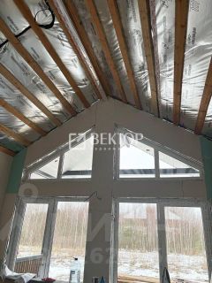- Крыша покрыта гибкой черепицей, а потолок выполнен из обрешётки из доски 25 100 мм.