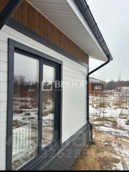 - Фасад отделан имитацией бруса и окрашен, подшив кровли выполнен из пластиковых софитов, а обналичка окон и углы дома - из сухой окрашенной доски.