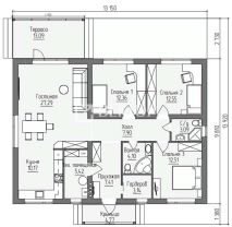 Дом расположен на участке площадью 13 соток и представляет собой одноэтажное здание общей площадью 115,8 м. В доме 3 комнаты, а высота потолка варьируется от 2,7 м в низкой точке до 3,9 м в коньке, что создаёт ощущение простора и свободы.