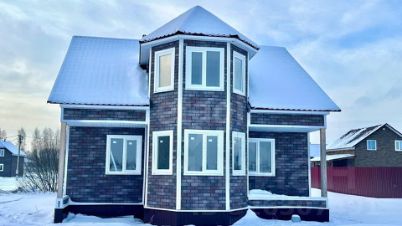 ___ Сам дом выполнен из СИП панелей европейского завода "ЭкоЕвроДом" г. Москва; с отделкой: пол ламинат, стены - обои, потолки натяжные; наружная отделка хауберк; кровля - металлочерепица, окна ПВХ двухкамерные, межэтажная лестница деревянная, фундамент - сваи, водоснабжение - скважина, водоотведение - септик, всё заведено. Электричество 15 кВт., вся электрика разведена по дому.