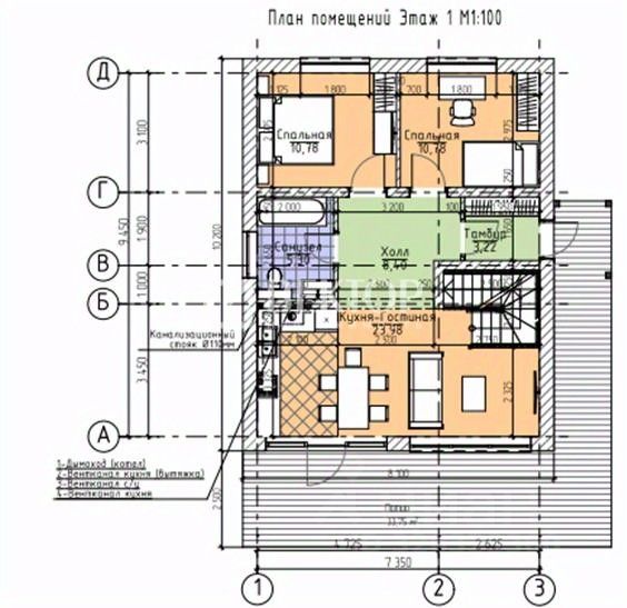 * количество этажей - 2;
