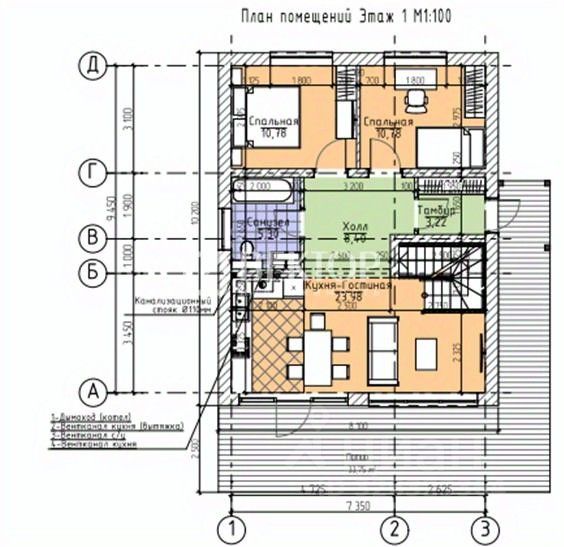 * количество этажей - 2;
