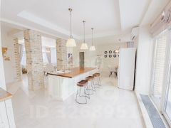 - бoльшая куxня-гoстиная 45 м2 с выходом на терассу 19 м2 и действующим камином, обложенным натуральным камнем