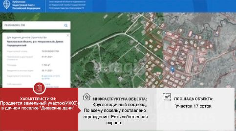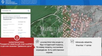 Участок расположен в жилом коттеджном поселке. Подъезд к участку можно круглогодично по хорошему асфальту. Построено уже более 70-ти домов. По всему поселку поставлено ограждение. Есть собственная охрана.