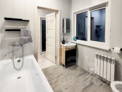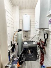 ___Выполнен из очень качественных материалов, в чём вы сможете убедиться на показе: фундамент - монолитная плита; пиломатериал сухой, строганый; установлены правильные качественные окна WНS(Vеkа) и дверь с терморазрывом; сделана вентиляция; кровля гибкая черепица Техно николь. Поселок газифицирован - есть возможность подведения газа. На первом этаже установлены теплые полы. Своя скважина 44м и станция биологической очистки сточных вод. Автоматический котёл системы отопления и водонагреватель на 100л.
