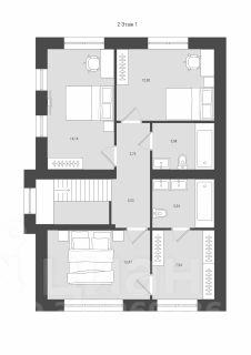 • 2 этаж: 63,1 м²: удобная мастер-спальня 12,5 м² с гардеробной 7,5 м² и собственным с/у 5,3 м², спальни 14,1 м² и 12,3 м², с/у 5,1 м².
