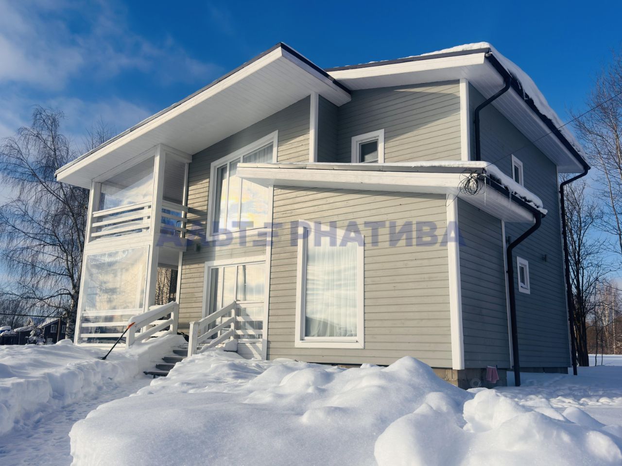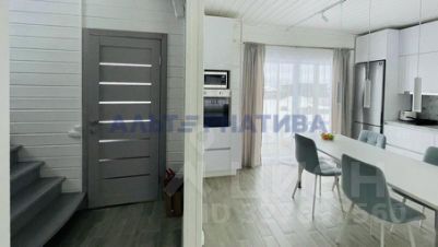 На первом этаже большая кухня-гостиная с выходом на веранду, комната и санузел. На втором этаже 3 комнаты (мастер-спальня с выходом на балкон), санузел. В доме большие панорамные окна с видом на озеро!