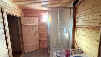 Баня с чердаком: на первом этаже гостиная, парилка, душевая кабина.