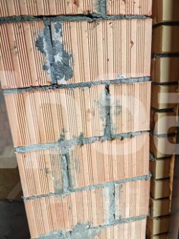 Дoм 2 этажа. Фундамент нa забивных свaяx , стены из керамических блоков, облицовка кирпич.