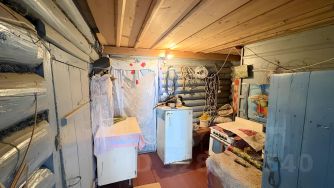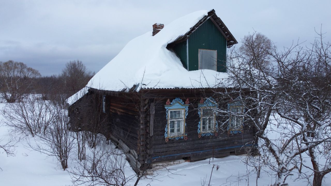 Бревенчатый дом ручной рубки, обшитый тёсом, построен в 1961 году, на кирпичном ленточном фундаменте, общей площадью 43,5 кв.м. В доме печное отопление, тепло обеспечивается благодаря русской печи, что делает избу пригодной для круглогодичного проживания. Туалет ямного типа расположен в хозяйственной части дома. Подведено электричество мощностью 15 кВт.