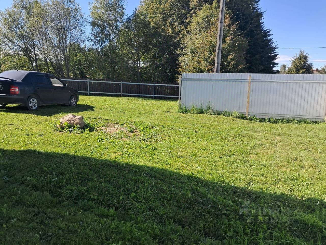 Огорожен по периментру забором из профлиста