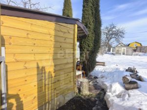 *** Участок не большой 2,7 сотки, с новой хозпостройкой и небольшим навесом, с одной небольшой грядкой для зелени и несколькими многолетними туями!!! На участке есть электричество и летний водопровод!!! Всегда можно спрятаться от дождя, вскипятить чайку или даже приготовить что-нибудь.
