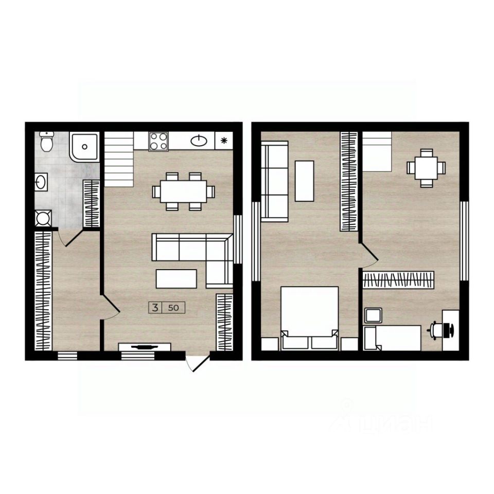 санузел - совмещенный, с душевой кабинкой.