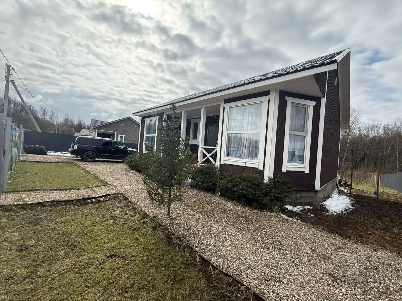 Дом построен по каркасной технологии на ленточном фундаменте с соблюдением всех норм и предназначен для круглогодичного проживания. Из панорамных окон открывается прекрасный вид на лес.
