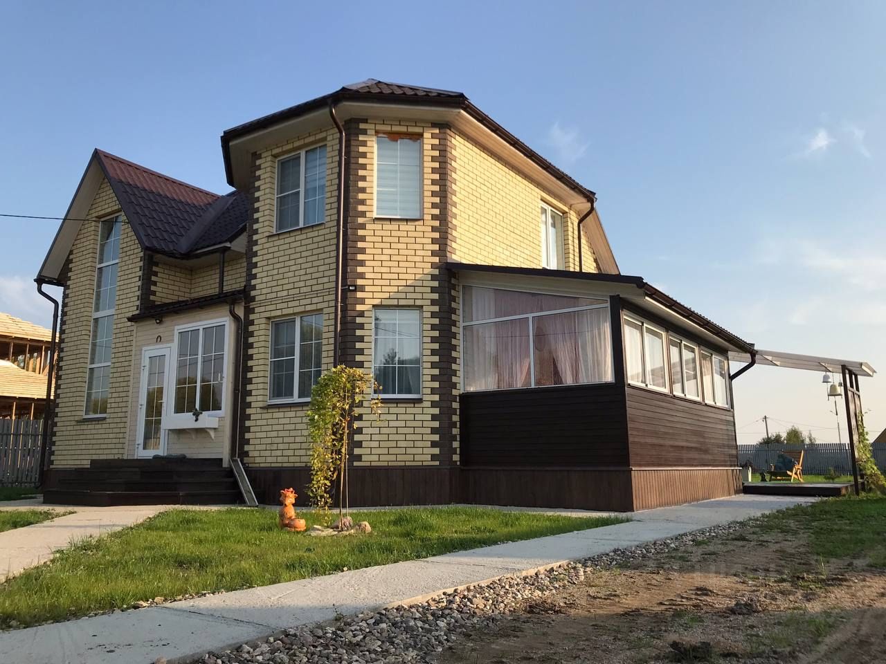 На территории участка ухоженный двор с парковочным местом, хозблок, навес на две машины, пространство для отдыха, мангальная зона. Забор по периметру.