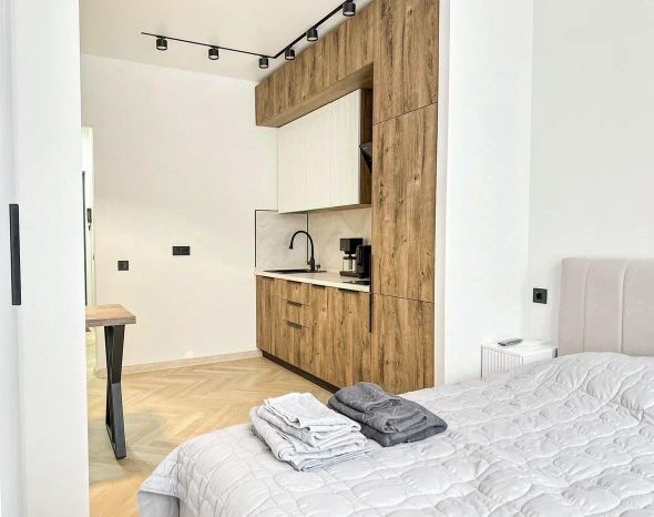 Уютная квартира(студия) в тихом центре — всё готово для вашего отдыха! Предлагаем светлую квартиру с полноценной кухней-столовой и комфортной двуспальной кроватью. Мы позаботились о деталях: вас ждет постельное белье отличного качества и полностью укомплектованная кухня (посуда, чайник, шкаф). Преимущества расположения: Самый центр города, но на очень тихой и спокойной улице. В 3 минутах пешком (200 м) - все нужные магазины: Пятерочка, Магнит, Красное&Белое Безопасность и парковка: Территория дома закрыта воротами и находится под круглосуточным видеонаблюдением. Ваш автомобиль будет припаркован прямо под окнами. Мы с любовью подготовили квартиру к вашему визиту. Приезжайте и почувствуйте домашний уют! С уважением к вам.