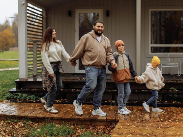 - В доме на втором этаже два просторных балкона (во всех трёх спальнях есть выход на балкон), один из балконов выходит на поле, речку и лес, второй балкон выходит окнами в деревню, но без прямого обзора на соседей. Также для гостей есть уличные пледы и непромокаемое покрывало для пикника на траве или для пляжа.