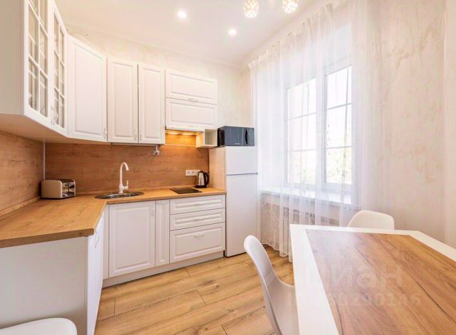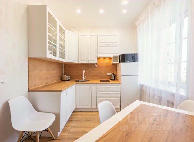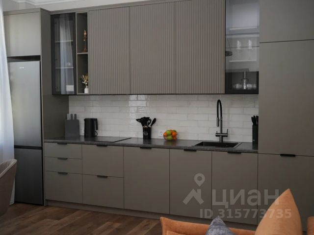 Удобная укомплектованная кухня с обеденной зоной: холодильник, микроволновая печь, варочная панель, электрический чайник, кухонный гарнитур, набор столовой посуды и посуда для приготовления пищи, посудомоечная машина. Гостя
