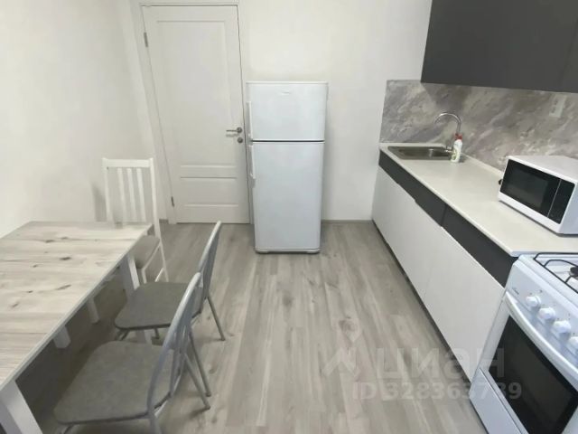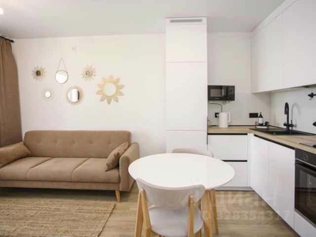 гарнитур, холодильник, свч, газовая плита с духовкой, стол и два мягких стула, остается чайник, караульная кофе-машина и вся необходимая посуда.