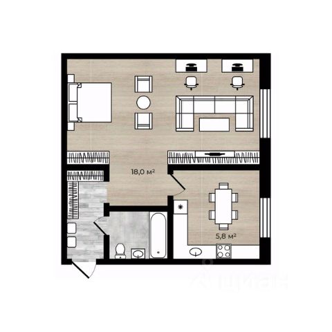 -Чистая квартира, вместительная комната 18кв.м, кухня 5.8кв.м;
