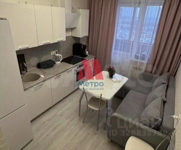 гарнитур, холодильник, свч, газовая плита с духовкой, стол и два мягких стула, остается чайник, караульная кофе-машина и вся необходимая посуда.